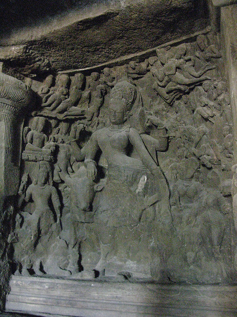 honor a Shivá. Se cree que las cavernas fueron construidas entre los años 810 y 1260. En el siglo XVI los portugueses dañaron gravemente las estatuas, usadas para practicar tiro al blanco.